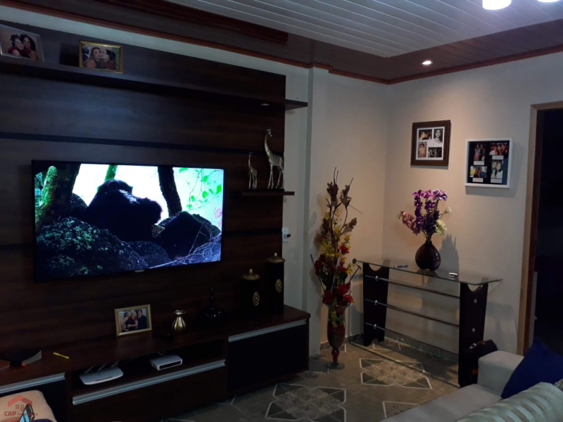 2º piso com 3 quartos. Cozinha, sala, área de serviço e garagem para 2 carros.